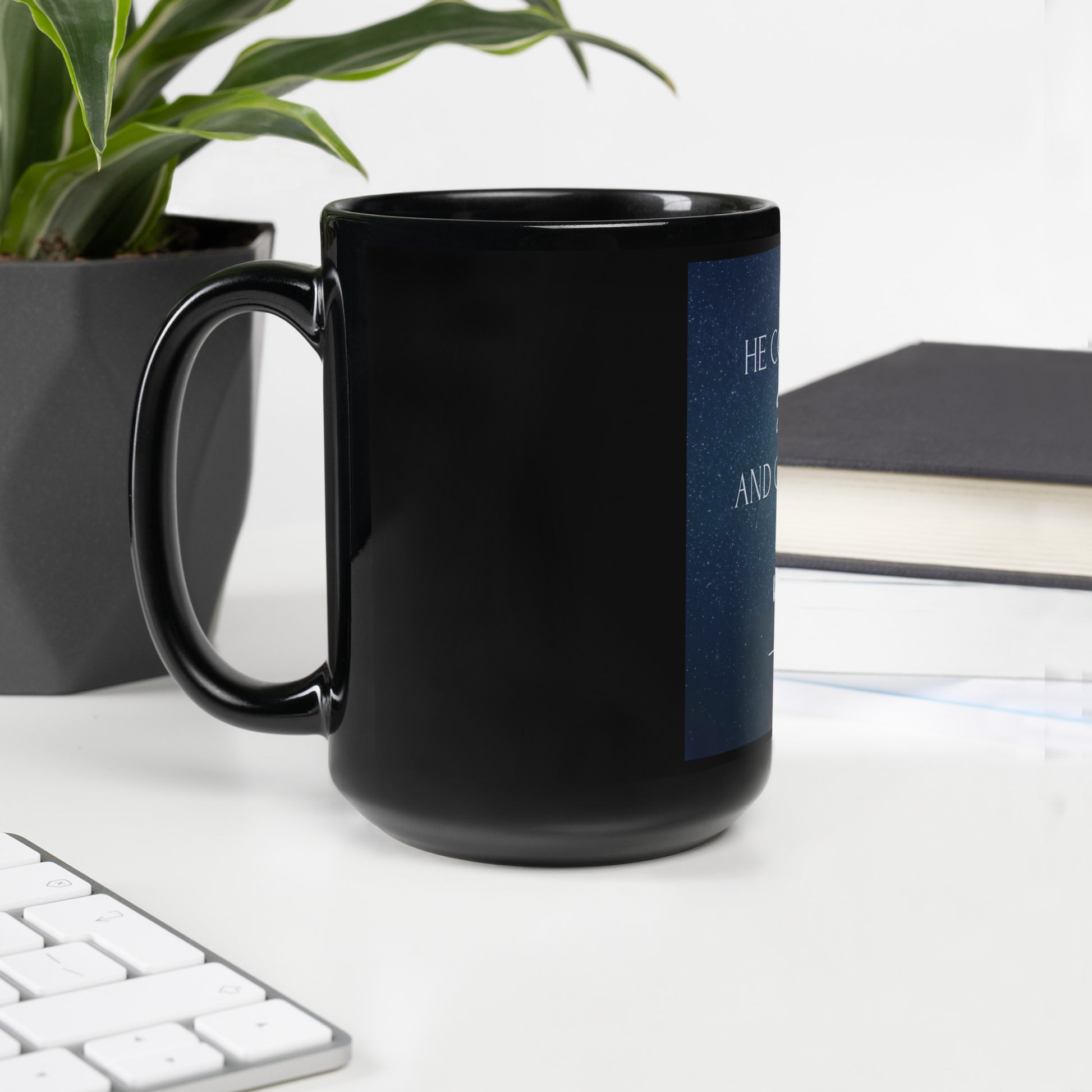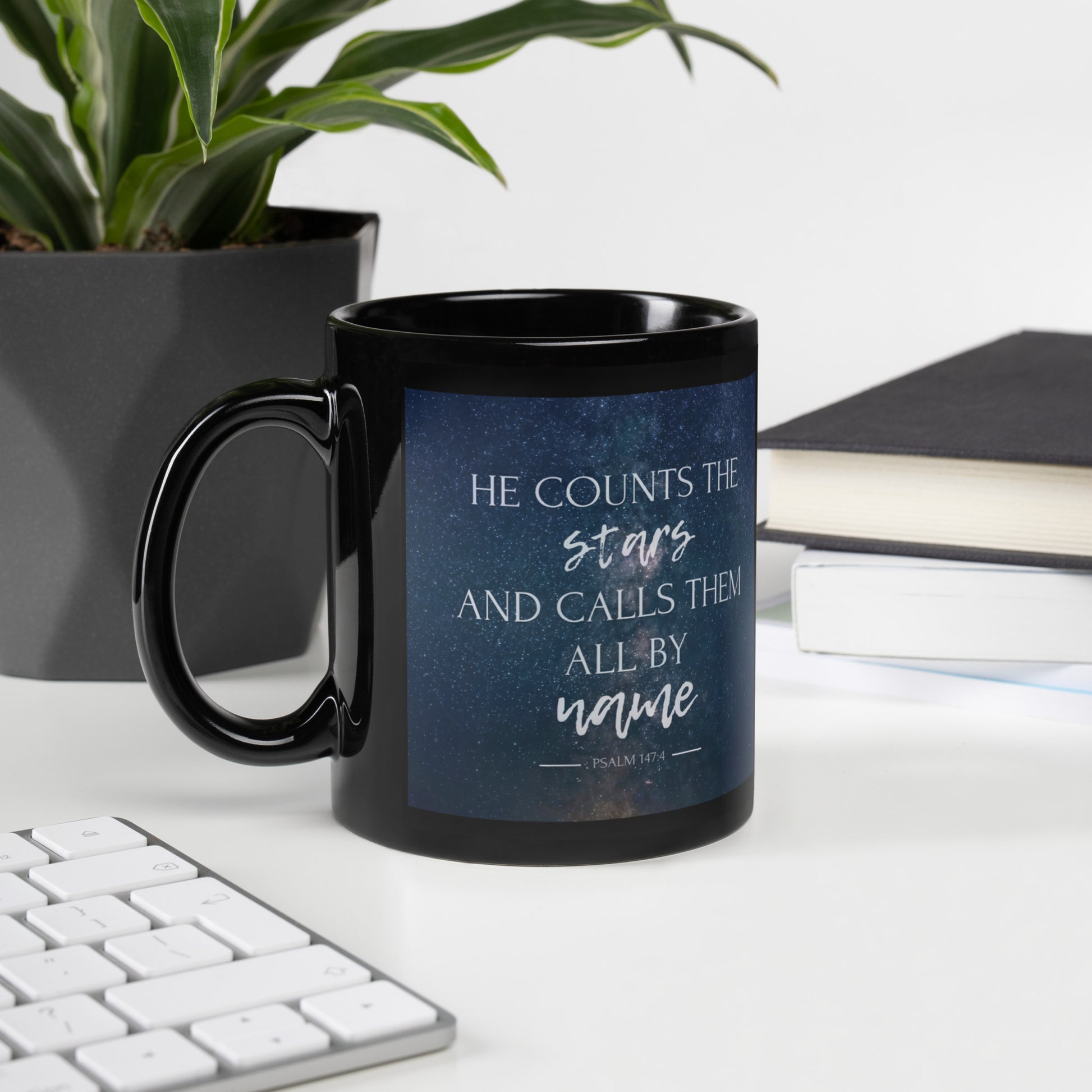Psalm 147:4 He Counts The Stars Black Glossy Mug
